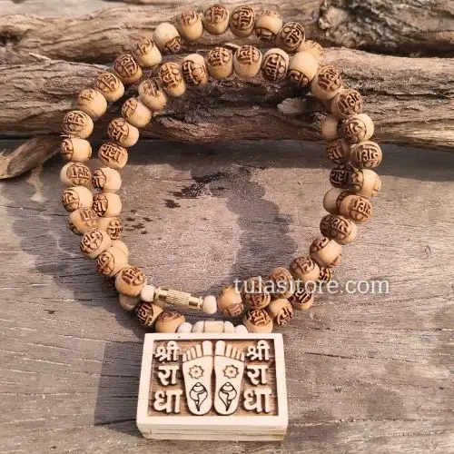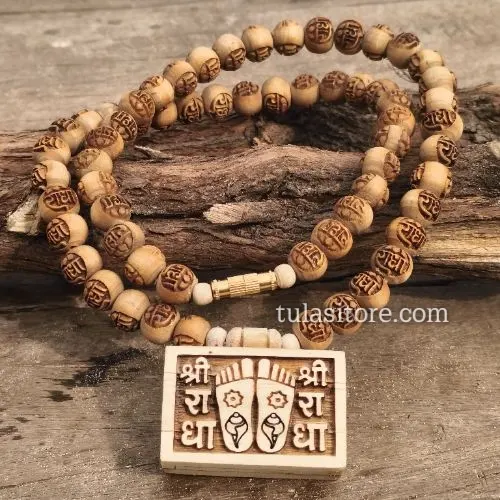 Yeh pavitra Bhaktmaal asli Tulsi wood beads se bani hui hai, jo Shri Radha Krishna ke bhakton ke liye bahut hi shubh maani jati hai. Har mala Vrindavan ke Brajwasi karigaron dwara hand-crafted hoti hai aur dispatch se pehle Thakur ji ke charnon me arpit karke pavitra ki jati hai.